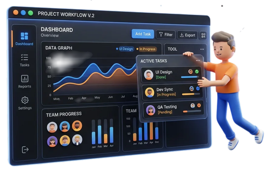 - Diseño que no requiere manual (UX/UI): eliminamos menús infinitos y construimos flujos limpios para que cualquier empleado use la herramienta desde el primer día.